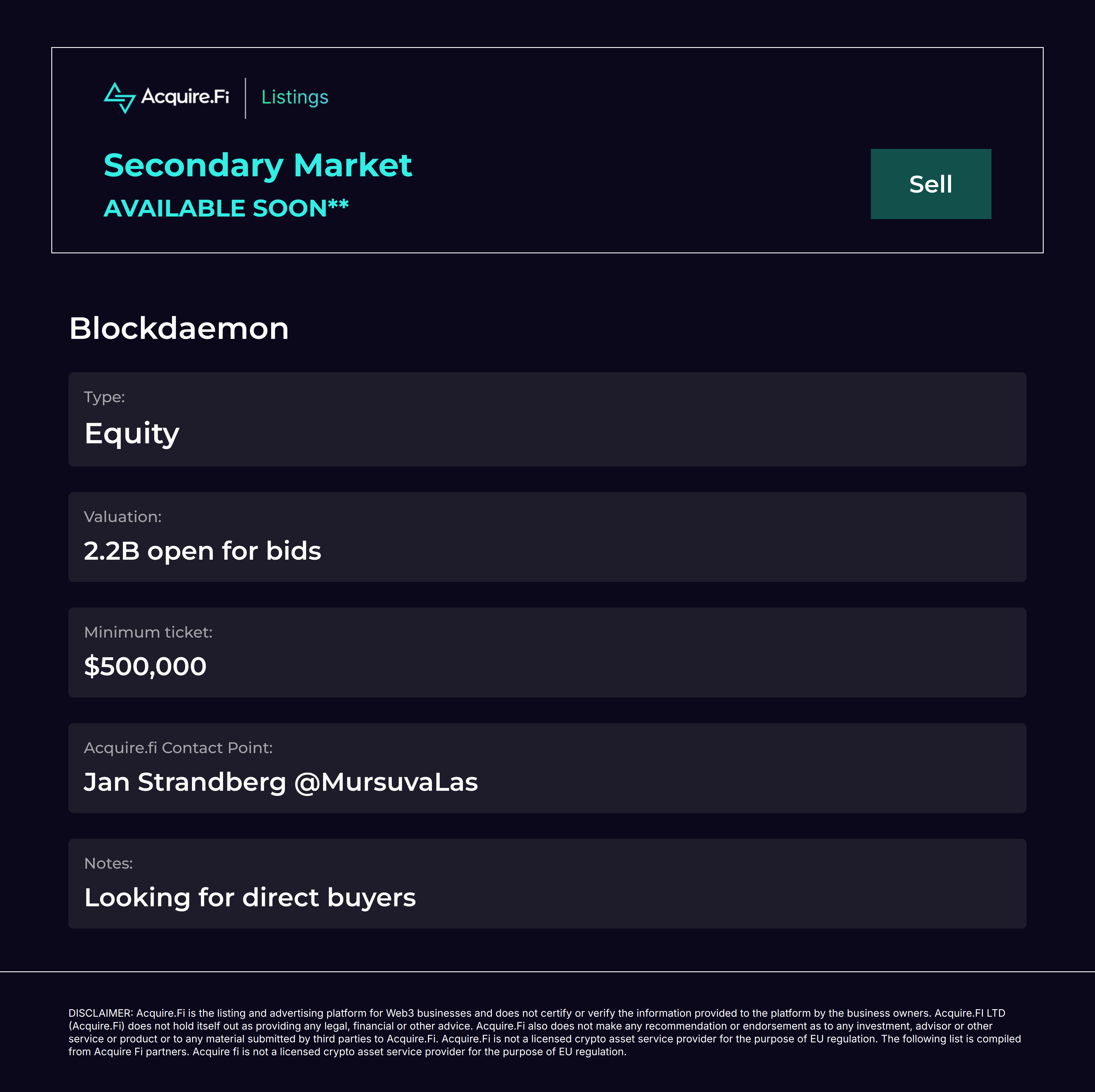 Secondary Market Sell: Blockdaemon.